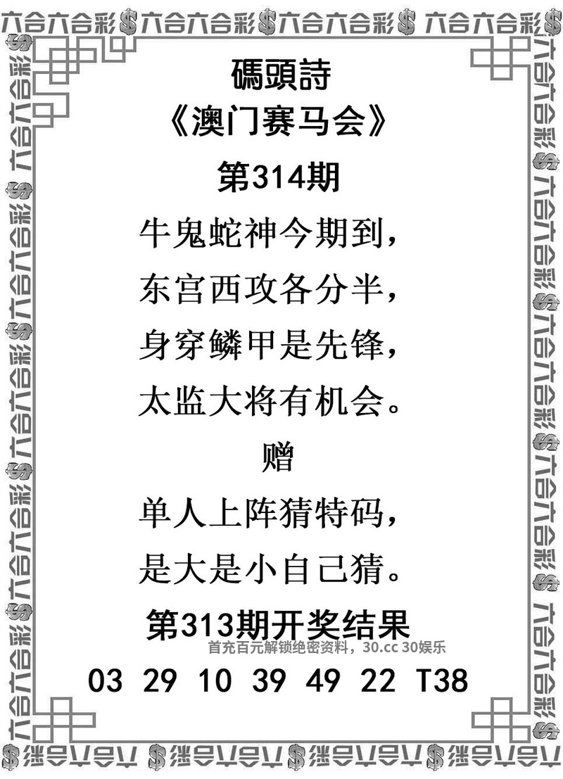 | 313期:吃肉菜草◉吃菜+吃草◉开:龙38错 |