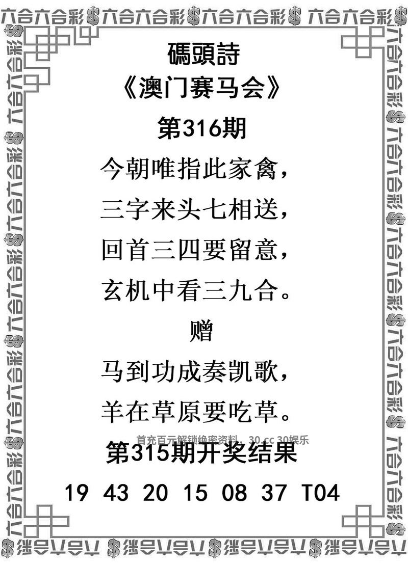 316期:解析:马到功成解出明肖马,羊在草原解出明肖羊 |